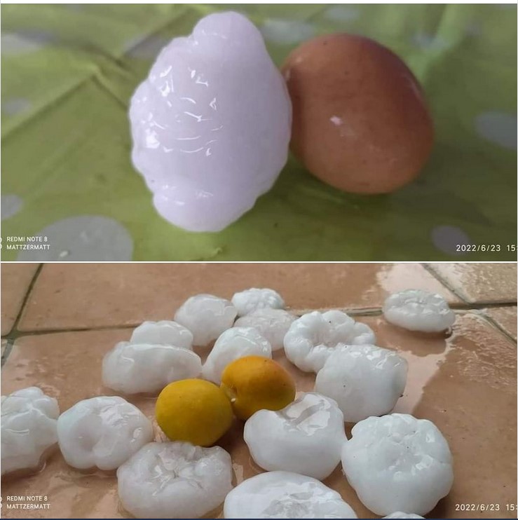 Οι φωτογραφίες από τα κομμάτια του χαλαζιού δίπλα σε αυγό και βερίκοκα είναι χαρακτηριστικές: