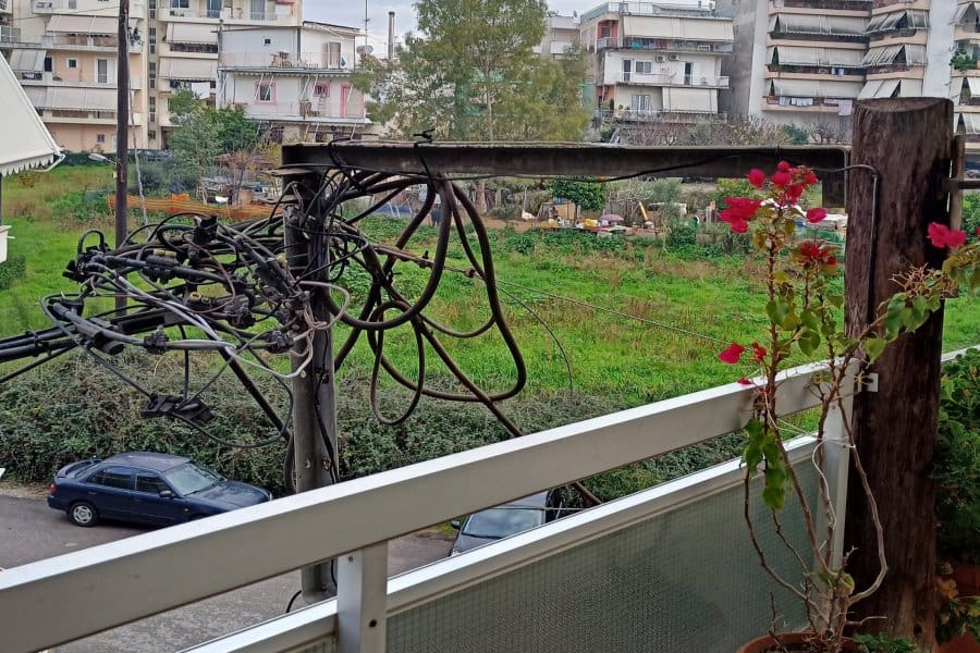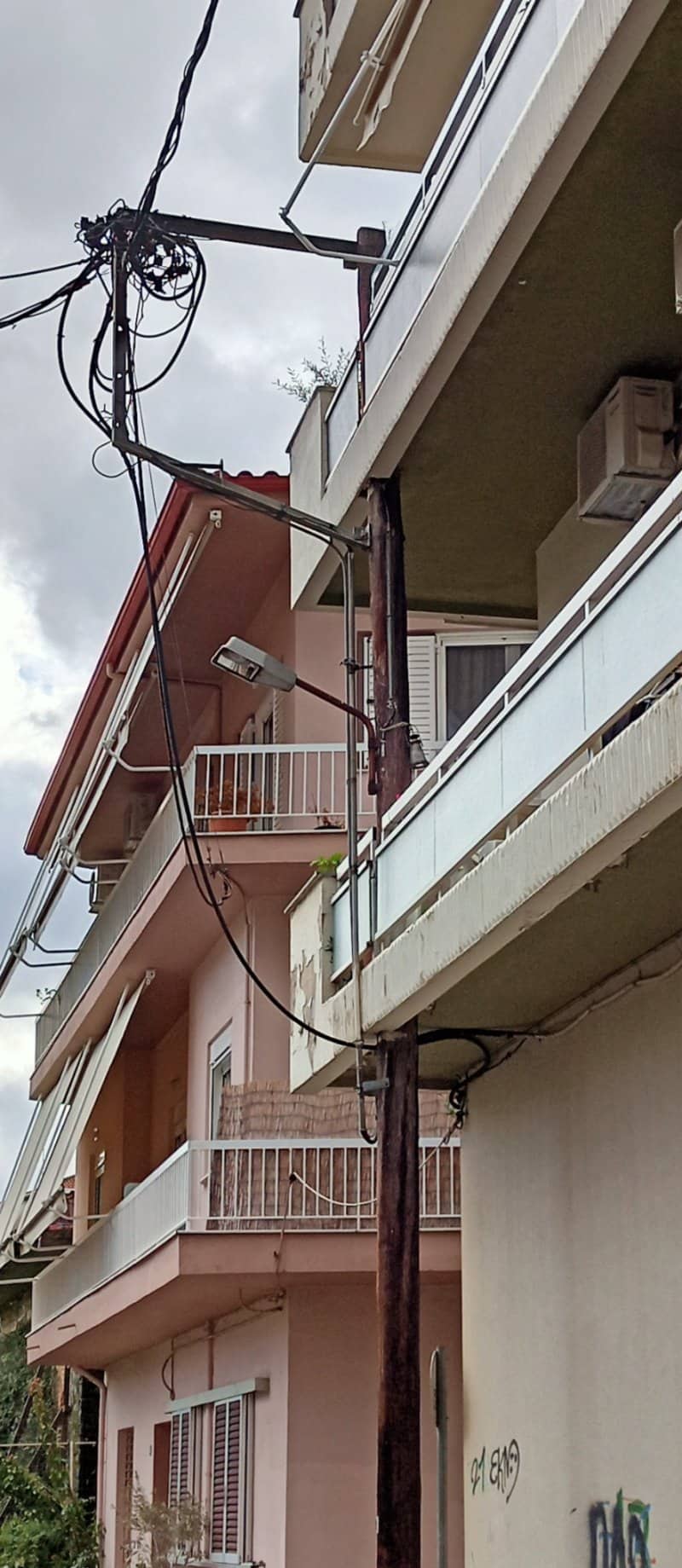 Σημείωσε πως έχει ενημερωθεί πολλάκις και ο ΔΕΔΔΗΕ. Παρόλα αυτά κάποιοι συμπολίτες μας, συνεχίζουν να απολαμβάνουν τα «προνόμια» μιας ξύλινης κολόνας με τα καλώδια να κρέμονται στο ένα μέτρο από το μπαλκόνι τους και στα δύο μέτρα από το δωμάτιο τους.