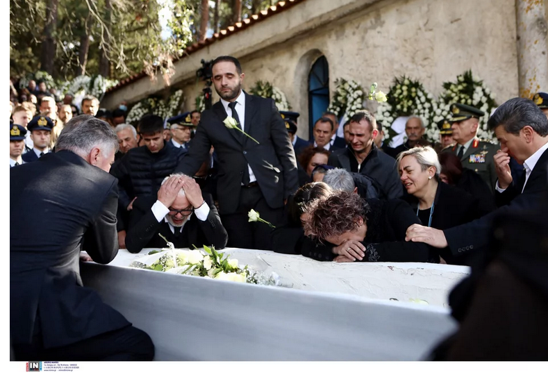 Πλήθος κόσμου, φίλοι και συγγενείς του υποσμηναγού ακολούθησαν την πομπή από τον Ιερό Ναό Προφήτη Ηλία στην Τρίπολη, όπου νωρίτερα έλαβε χώρα η εξόδιος ακολουθία, έως το χωριό Πικέρνι για την ταφή.