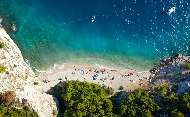 Πλαισιωμένη από απόκρημνους βράχους και σκιασμένη από πεύκα, αυτή η απομακρυσμένη παραλία στην ηπειρωτική χώρα απέναντι από το νησί Brač προσεγγίζεται μέσω ενός στενού μονοπατιού που μοιάζει φτιαγμένο για κατσίκες, παρά για ανθρώπους που αναζητούν μια απόδραση χωρίς ρούχα στην Αδριατική. Φροντίστε να έχετε μαζί σας μια χοντρή πετσέτα ή ακόμα και μια καρέκλα θαλάσσης – όπως σε πολλές παραλίες της Κροατίας, η επιφάνεια είναι από βότσαλα και όχι από άμμο.