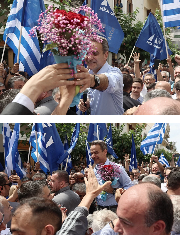 «Σας ευχαριστώ, σας ανταποδίδω την αγάπη που μου δίνετε, την εμπιστοσύνη που δείξατε στη Νέα Δημοκρατία, δίνοντάς μας μία συγκλονιστική νίκη στις εκλογές της 21ης Μαΐου.