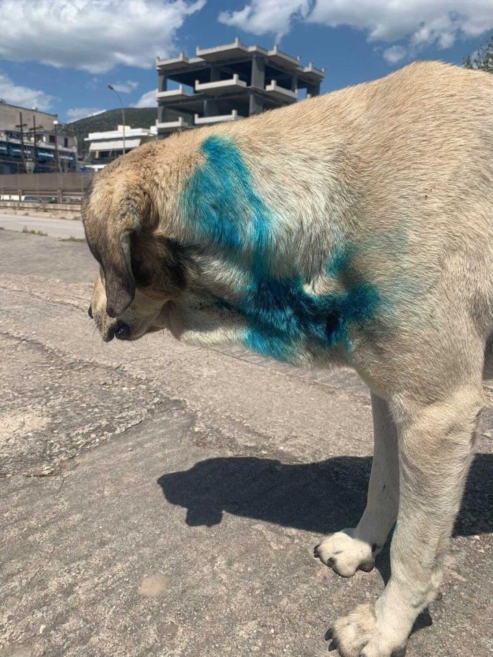 Μια φίλη αναγνώστρια μας έστειλε τις φωτογραφίες που βλέπετε με τον αδέσποτο σκύλο από τη Στυλίδα. νομίζοντας ότι καποιος τον έβαψε με σπρέι.