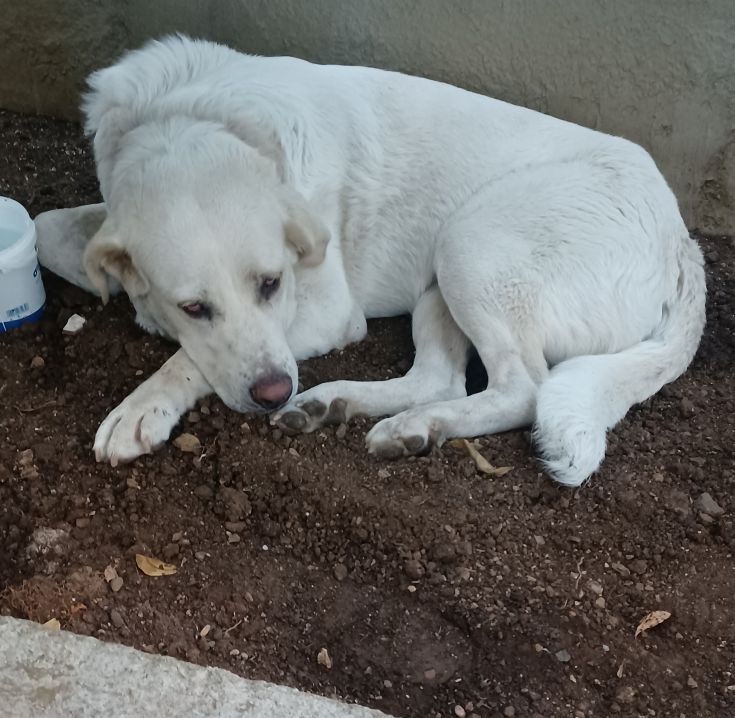 Η σκυλίτσα στις συνημμένες φωτογραφίες έχει βρει καταφύγιο σε αυλή σπιτιού πλησίον του Ορφανοτροφείου Θηλέων.