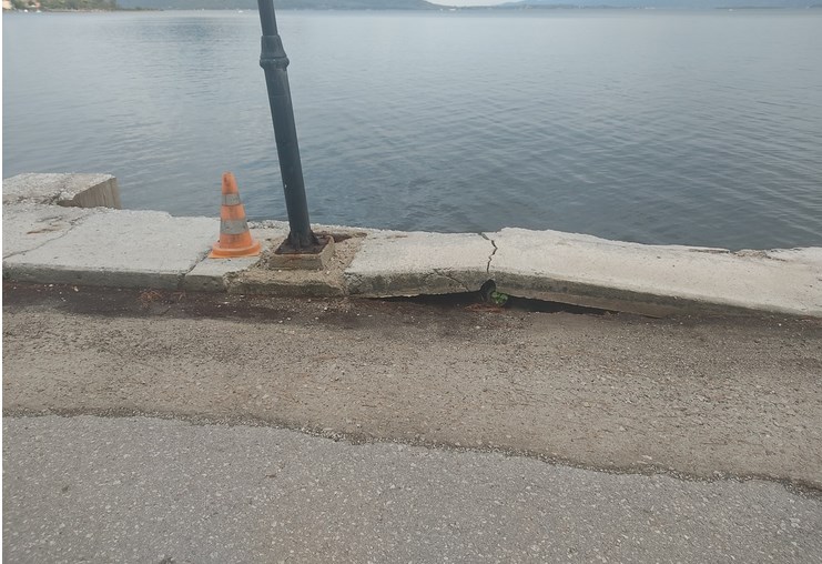 Το οδόστρωμα σε πολλά σημεία κατά μήκος της παραλίας έχει υποχωρήσει, με αποτέλεσμα να αποτελεί κίνδυνο για πεζούς και αυτοκίνητα. Δεν μπορείς πλέον να κάνεις τη βόλτα σου, καθώς πρέπει να έχεις τα μάτια σου... δεκατέσσερα!