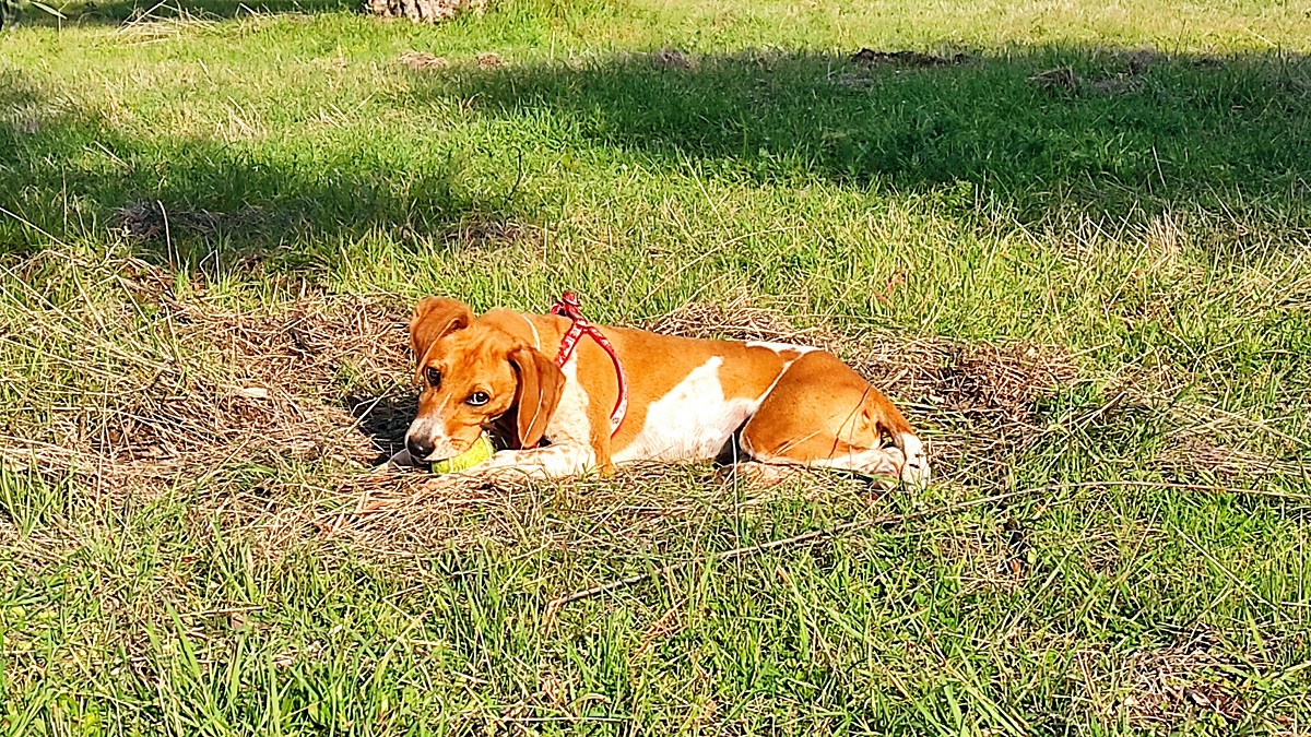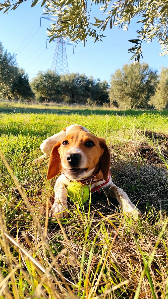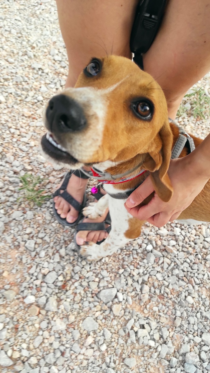 Είναι κυνηγόσκυλο, περίπου 12 κιλά και 10 μηνών.