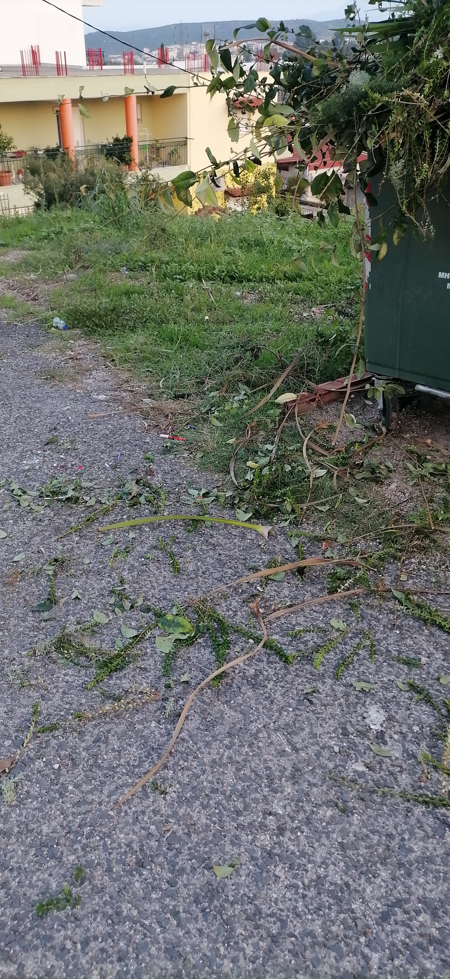 Κάποιος κύριος της γειτονιάς γέμισε τον κάδο μέσα και έξω με κλαδέματα. Τα πήρε από το δικό του σπίτι και τα έφερε έξω από τα δικά μας.