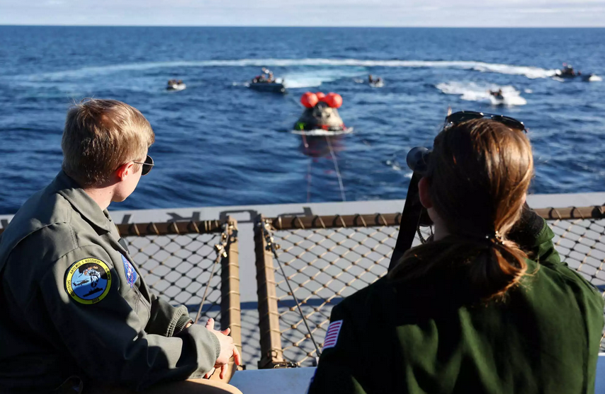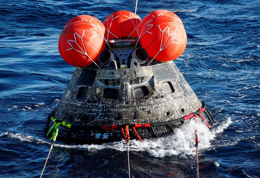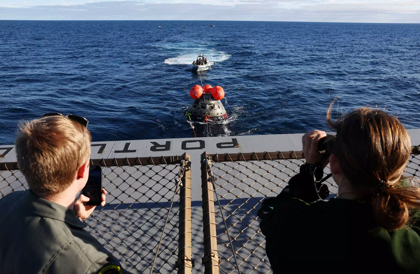 Το διαστημόπλοιο Orion της NASA επέστρεψε στη Γη, αφού πέρασε περισσότερες από 25 ημέρες στο διάστημα και ταξίδεψε γύρω από τη Σελήνη, με στόχο να προετοιμάσει την επιστροφή του ανθρώπου στη Σελήνη τα επόμενα χρόνια. Στις φωτογραφίες που έδωσε στην δημοσιότητα η NASA φαίνονται δύτες του Πολεμικού Ναυτικού των ΗΠΑ να προσαρτούν καλώδια για να ρυμουλκήσουν την κάψουλα Orion.