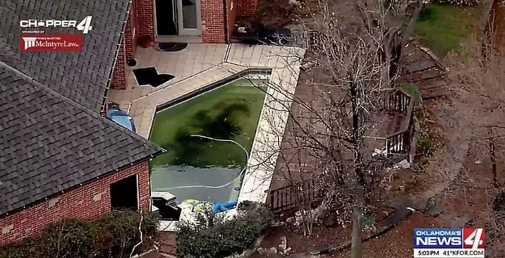 Εναέρια πλάνα από το σπίτι έδειχναν μια πρασινωπή πισίνα γεμάτη με νερό γεμάτο φύκια.