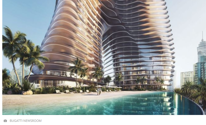 Η κατασκευάστρια εταιρεία πολυτελών αυτοκινήτων, Bugatti, αποκάλυψε τα σχέδιά της για την είσοδό της στον χώρο των πολυτελών ακινήτων. Συγκεκριμένα, έδωσε στη δημοσιότητα τα σχέδια για έναν ουρανοξύστη 43 ορόφων στο Ντουμπάι που θα διαθέτει μεταξύ άλλων δύο ανελκυστήρες για οχήματα, από το γκαράζ μέχρι το ρετιρέ.