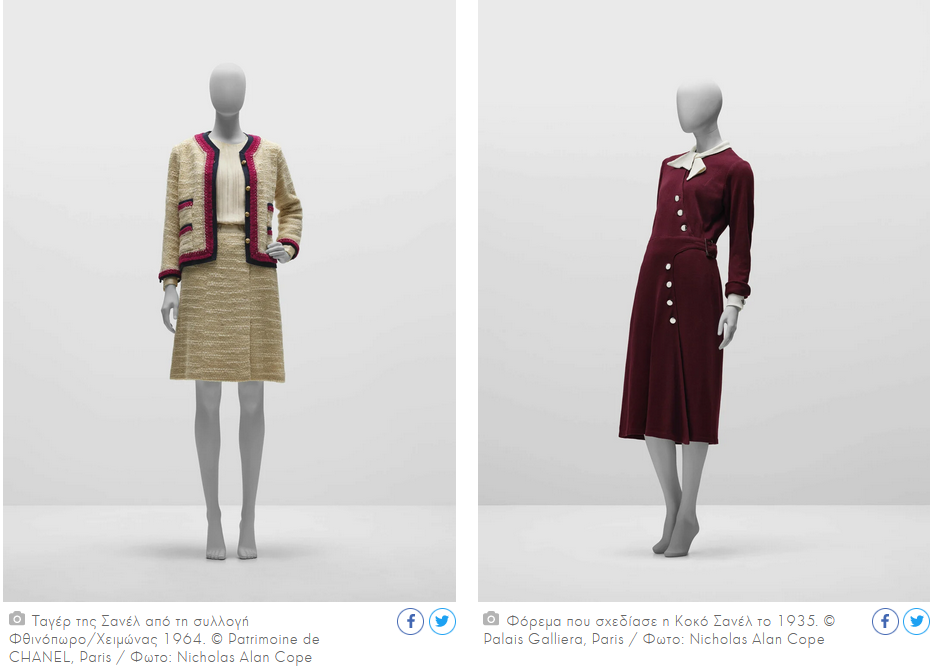 Ο τίτλος της έκθεσης είναιGabrielle Chanel: Fashion Manifestoκαι πρόκειται για την πρώτη που διοργανώνεται από μεγάλο βρετανικό μουσείο, με 122 από τα ρούχα που παρουσιάζονται να είναι νέες προσθήκες. Μερικά από αυτά έχουν ηλικία 100 ετών και, όπως δήλωσαν οι επιμελητές, «μοιάζουν σαν να έχουν ραφτεί χθες».