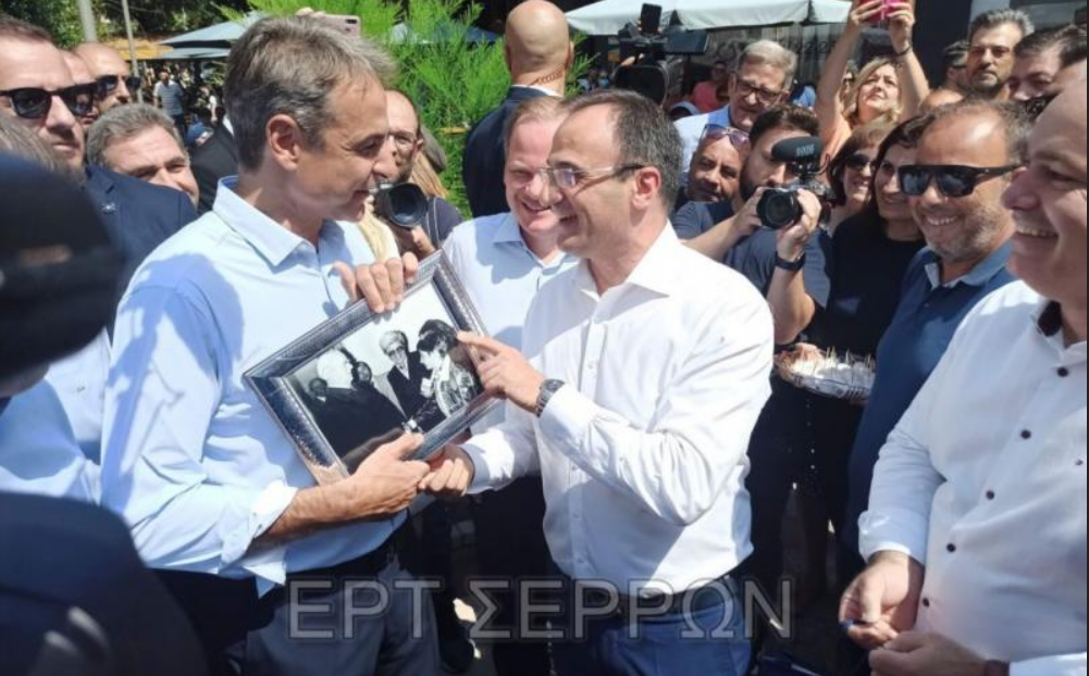 Το άνοιγμα του Πρωθυπουργού προς την καραμανλικη πτέρυγα του κόμματος φαίνεται και από το περιστατικό που διηγήθηκε ο κ. Μητσοτάκης, έχοντας στο πλευρό του τον υπουργό Κώστα Καραμανλή, όταν έφτασεστον κεντρικό πεζόδρομο των Σερρών όπου εξελίχθηκε μία μίνι συγκέντρωση:«Καθώς ερχόμουν με τα πόδια από τον δρόμο που φέρνει το όνομα του Εθνάρχη και ιδρυτή της παράταξής μας, του Κωνσταντίνου Καραμανλή, με υποδέχθηκε ο δήμαρχος, ο οποίος είχε την καλοσύνη να μου χαρίσει μια φωτογραφία από τα μέσα της δεκαετίας του 1970 όπου ένα μικρό αγόρι με μια ωραία φορεσιά χαιρετάει τον Κωνσταντίνο Καραμανλή».