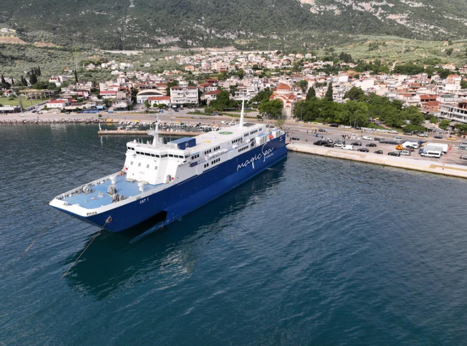 Πράγματι, σήμερα, παρουσία του Χρήστου Σταϊκούρα, απέπλευσε για πρώτη φορά το επιβατηγό – οχηματαγωγό – ταχύπλοο «CAT 1».