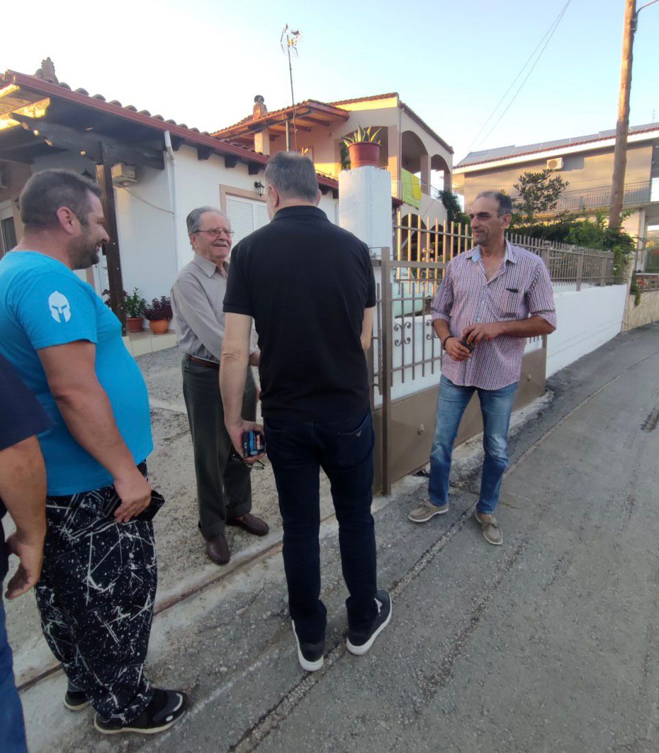 Οι κάτοικοι τον ενημέρωσαν για τις ζημιές που προκάλεσε η πρόσφατη κακοκαιρία και τις οποίες διαπίστωσε ο ίδιος, ιδιαίτερα, σε δρόμους και την παιδική χαρά του χωριού.