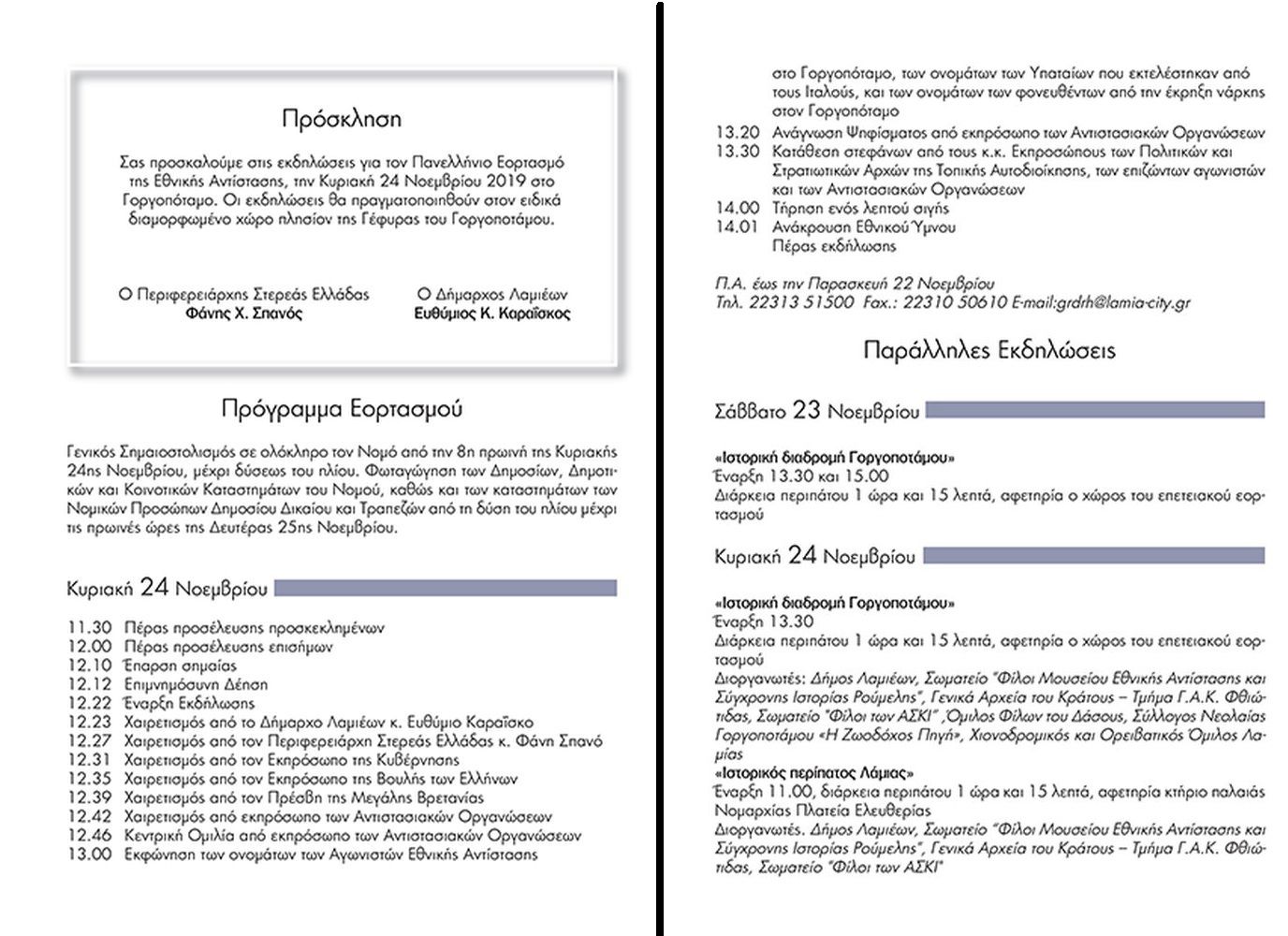 Δείτε αναλυτικά όλο το πρόγραμμα για τον εορτασμό της Εθνικής Αντίστασης στο Γοργοπόταμο.