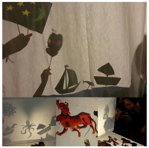Με την έκθεση/εργαστήριο ”Στη χώρα των Σκιών”, πρωινά εργαστήρια που απευθύνονται σε μαθητές Σχολείων και απογευματινά εργαστήρια που απευθύνονται σε ομάδες γονιών με παιδιά.