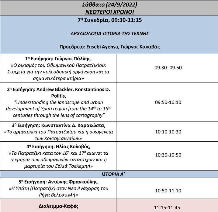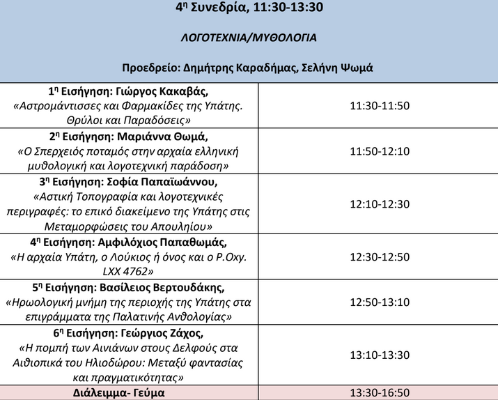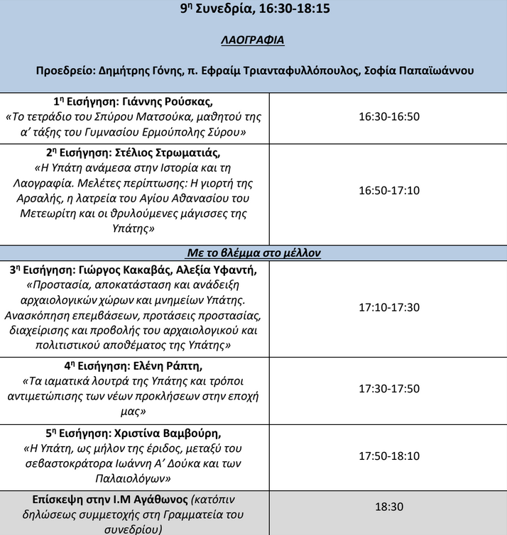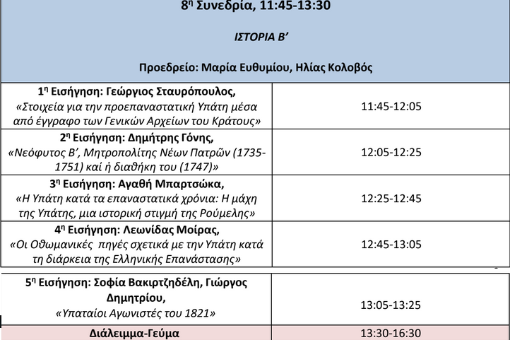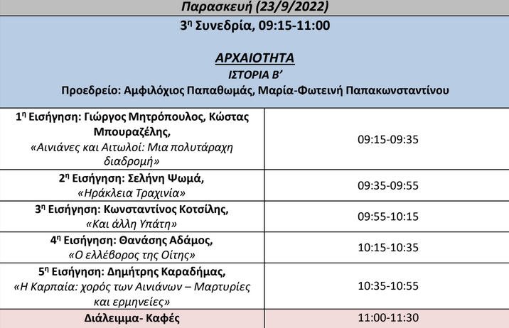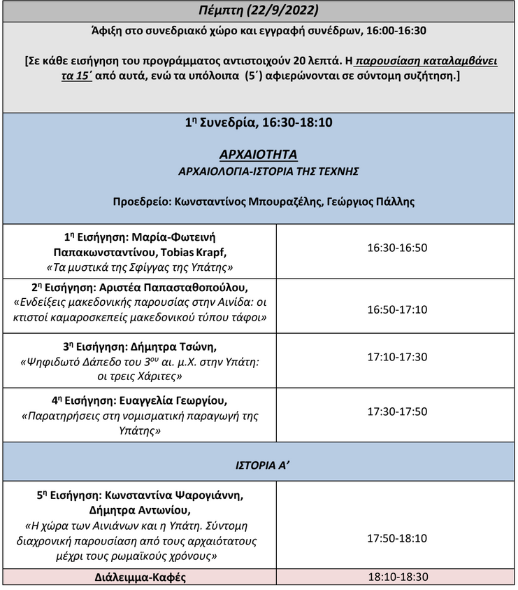 Με τίτλο: «Αίνος Υπάτης - Η Υπάτη και η περιοχή της από την αρχαιότητα έως την ίδρυση του νεοελληνικού κράτους» - 22 έως 24 Σεπτεμβρίου.