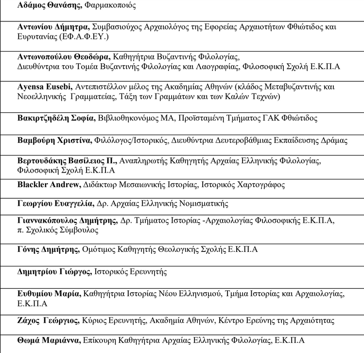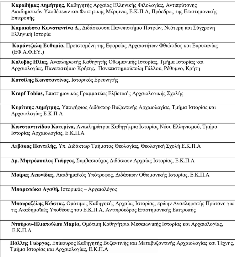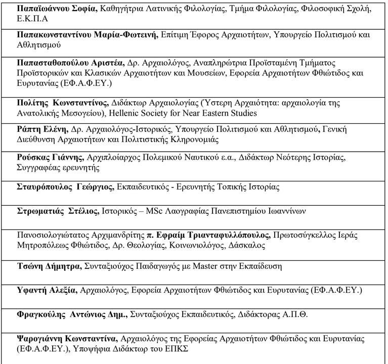 • Ευθυμία Καράντζαλη, Διδάκτωρ Αρχαιολόγος, Προϊσταμένη της Εφορείας Αρχαιοτήτων Φθιώτιδος και Ευρυτανίας