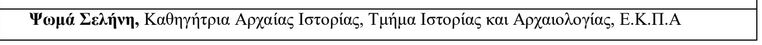 • Σελήνη Ψωμά, Καθηγήτρια Αρχαίας Ιστορίας, Τμήμα Ιστορίας και Αρχαιολογίας, ΕΚΠΑ