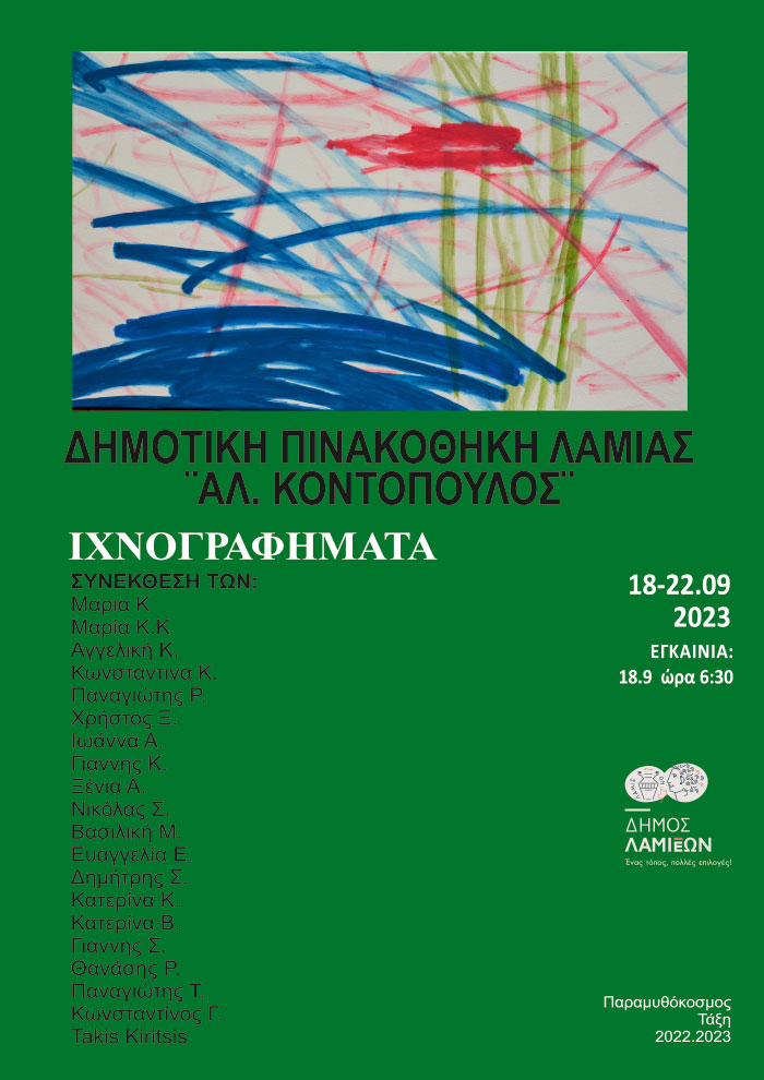 Η έκθεση φιλοξενείται στη Δημοτική Πινακοθήκη Λαμίας «Αλέκος Κοντόπουλος» 18 με 22 Σεπτεμβρίου 2023.