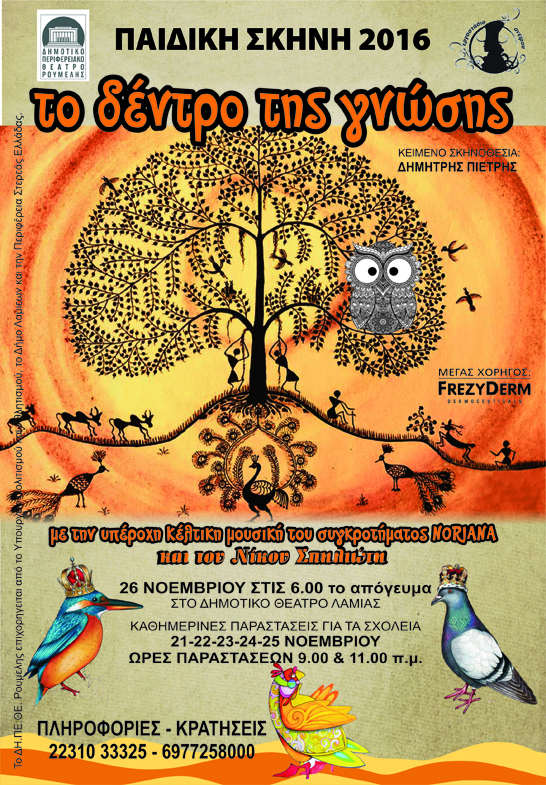 Το ΔΗ.ΠΕ.ΘΕ. Ρούμελης παρουσιάζει στα πλαίσια της Παιδικής Σκηνής του την παιδική θεατρική παράσταση «Το Δέντρο της Γνώσης» σε συμπαραγωγή με την εταιρεία παραγωγής «Εργοστάσιο Ονείρου».
