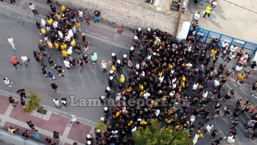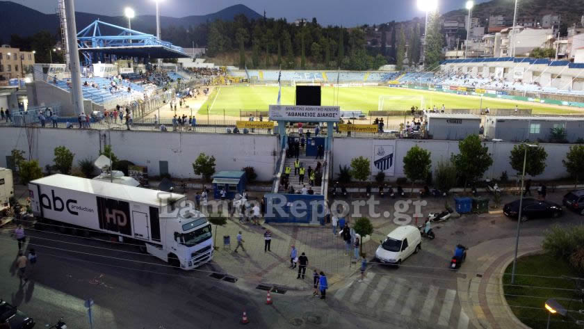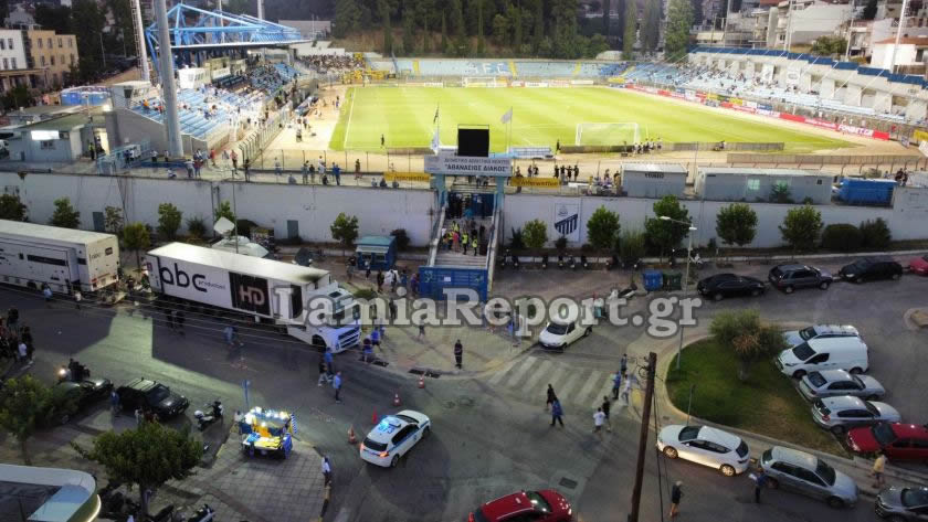 Όλα έτοιμα για τον αγώνα Λαμία - ΑΕΚ που ξεκινάει σε λίγο στο γήπεδο της πόλης - Δρακόντεια τα μέτρα από την αστυνομία.