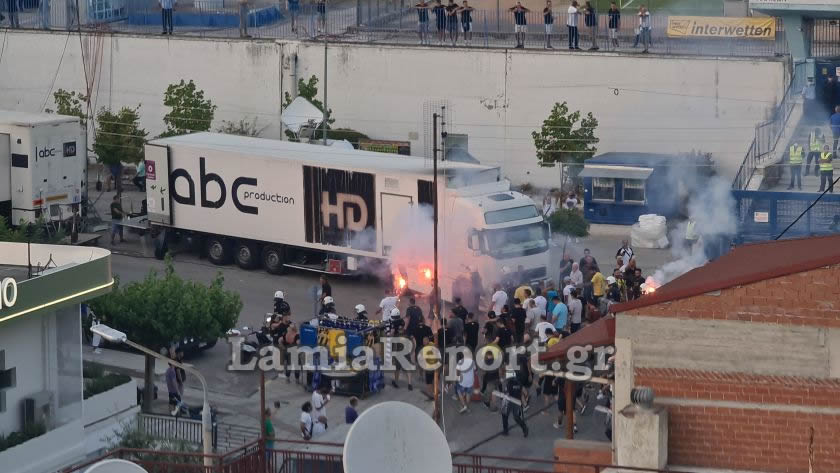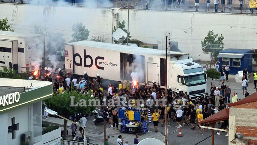Μια ώρα περίπου πριν τον αγώνα οπαδοί της ΑΕΚ ξεκίνησαν με τα πόδια από τον Σύνδεσμο της οδού Καραΐσκάκη στη Λαμία και έφτασαν στο στο ΔΑΚ Λαμίας«Αθανάσιος Διάκος».