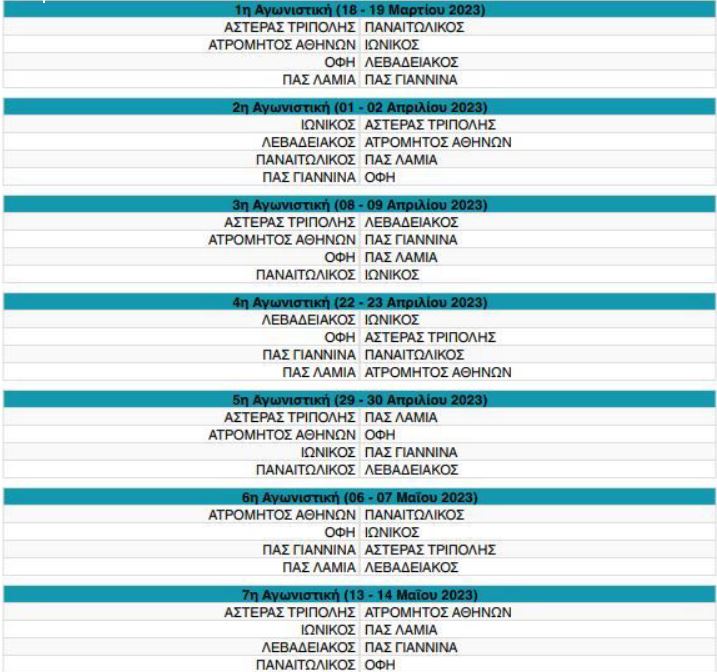 Δείτε το πρόγραμμα των Stoiximan Super League Playouts ανά αγωνιστική: