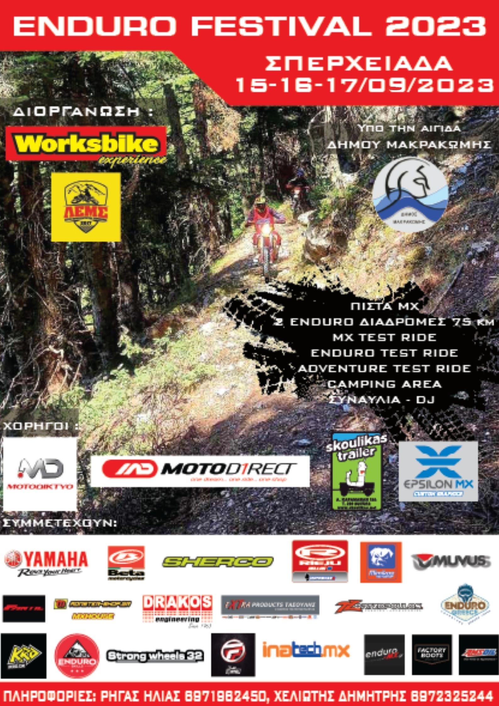 Το Enduro festival επιστρέφει λοιπόν, σε μια συνδιοργάνωση του Worksbike Experience και της Λέσχης Μοτοσικλετιστών Σπερχειάδας (ΛΕΜΣ) με την υποστήριξη του Δήμου Μακρακώμης.