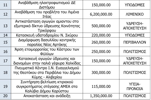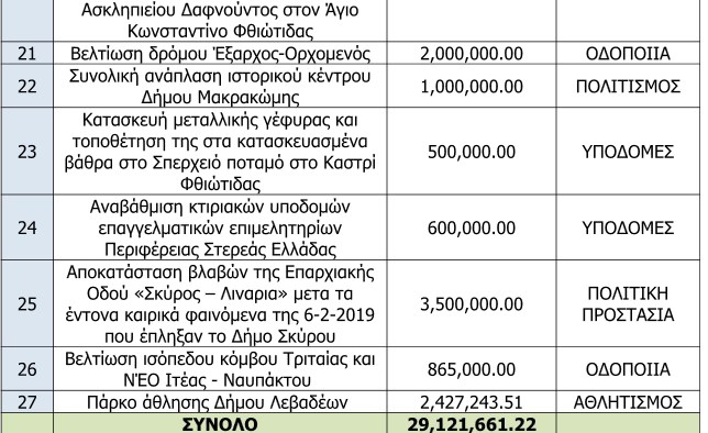 Αναλυτικά τα 27 έργα και οι προϋπολογισμοί τους: