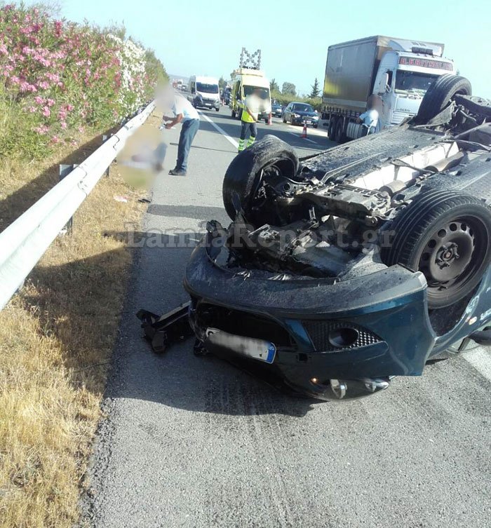 Συγκεκριμένα στο 143ο χλμ. της παραπάνω οδού εξετράπη της πορείας του και ανατράπηκε στοοδόστρωμα, ένα μπλε Seat Toledo με τρεις επιβαίνοντες οι οποίοι και εγκλωβίστηκαν μέσα σε αυτό.