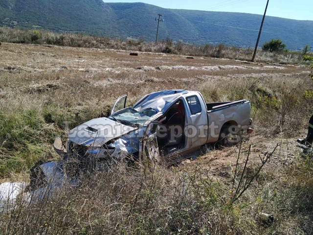 Το ασημί αγροτικό φορτωμένο με βαμβακόπιτα και επιβάτες ένα ηλικιωμένο ζευγάρι, επέστρεφε στον Έξαρχο, όταν στη διασταύρωση με τη Σφάκα για άγνωστο λόγο βγήκε εκτός δρόμου με αποτέλεσμα να φέρει τούμπες και να προσγειωθεί στα χωράφια.