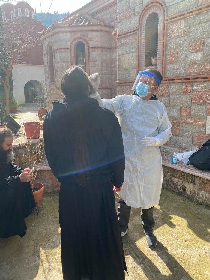 Σύμφωνα με το ρεπορτάζ του LamiaReport, παρών στη δειγματοληψία ήταν και ο Διευθυντής του Κέντρου Υγείας Αμφίκλειας Θεοχάρης Λεπενός, που εξέτασε 8 μοναχούς με συμπτώματα πυρετού και δύσπνοιας και παρέπεμψε για εισαγωγή στο νοσοκομείο τρεις εξ αυτών, έχοντας ο ένας ελαφριά πνευμονία και οι άλλοι δύο χαμηλό οξυγόνο.