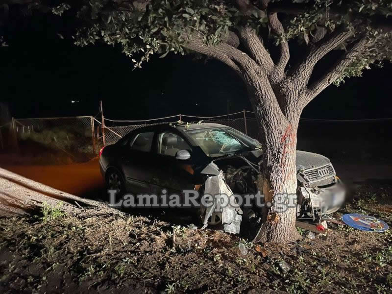Ο 55χρονος οδηγός του Audi που βλέπετε «κατάφερε» να πέσει πάνω στο μοναδικό δέντρο που υπάρχει σε αυτό το κομμάτι του δρόμου.
