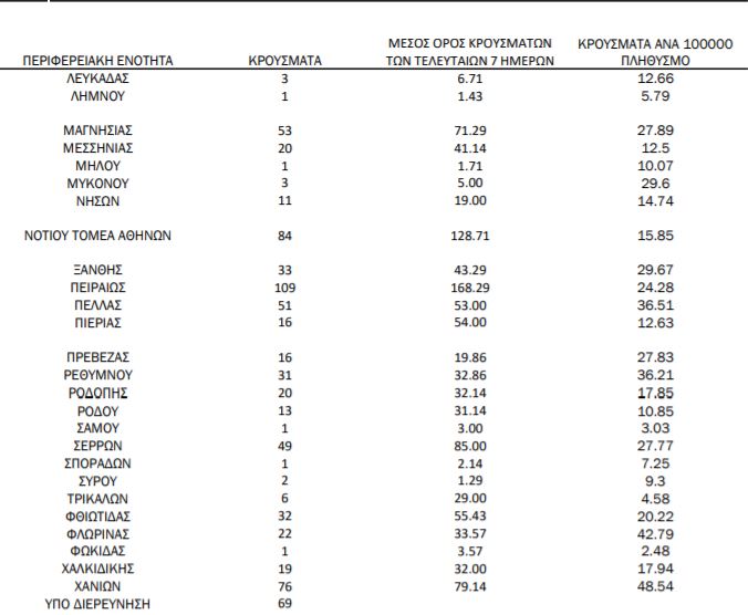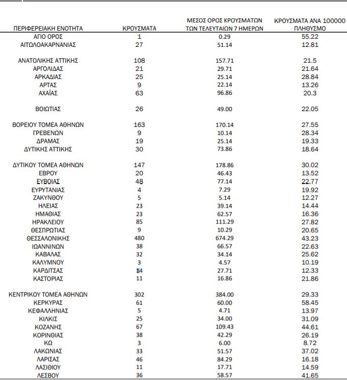 Στα 111 τα νέα κρούσματα με την Εύβοια να έχει τα περισσότερα…