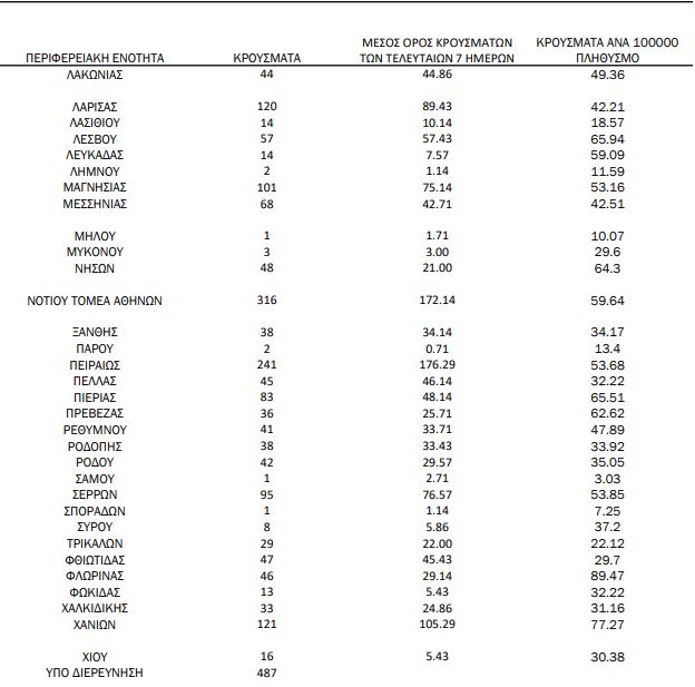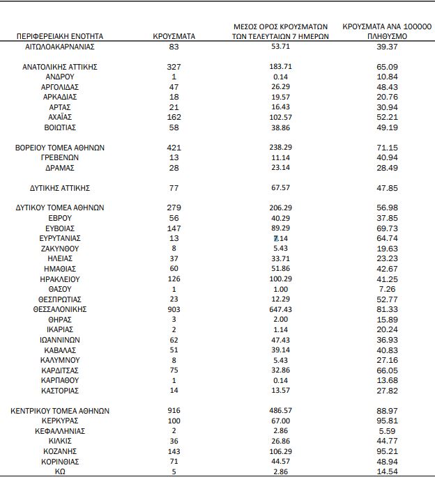 47 κρούσματα έδειξε ο ΕΟΔΥ στη Φθιώτιδα και 278 στη Στερεά