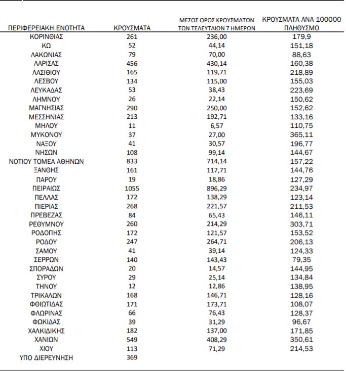 Αναλυτικά η διασπορά των κρουσμάτων το τελευταίο 24ωρο: