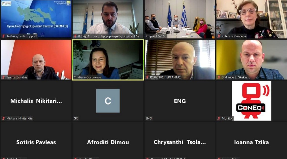 Στη σύσκεψη, η οποία πραγματοποιήθηκε μέσω διαδικτύου, συμμετείχαν από τηνDGEMPLOIοιCristinaCostinescu,AnnaBacopoulouκαιDimitrisMathioudakis,από την ΕΥΔΕΠ Στερεάς Ελλάδας ο Προϊστάμενος Κωνσταντίνος Λέμας με υπηρεσιακά στελέχη, καθώς και εκπρόσωποι από το Υπουργείο Ανάπτυξης και τηνΕιδική Υπηρεσία Συντονισμού και Παρακολούθησης Δράσεων Ευρωπαϊκού Κοινωνικού Ταμείου (ΕΥΣΕΚΤ).