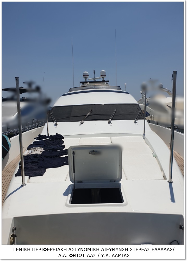 Στην έρευνα που πραγματοποίησαν οι αστυνομικοί της Υποδιεύθυνσης Ασφαλείας Λαμίας με τη συνδρομή υπαλλήλων της Επιχειρησιακής Διεύθυνσης του Σ.Δ.Ο.Ε. Αττικής, εκτός από τη θαλαμηγό κατάσχεσαν: