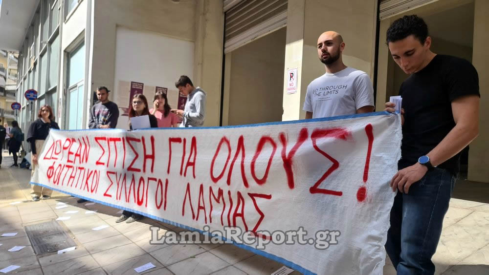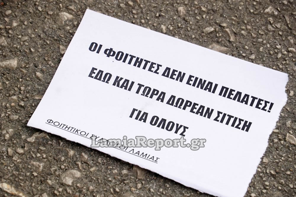Με σύνθημα «οι φοιτητές δεν είναι πελάτες» και ζητώντας δωρεάν σίτιση για όλους, οι Φοιτητικοί Σύλλογοι Λαμίας, πραγματοποίησαν το μεσημέρι της Παρασκευής (7/10) συγκέντρωση διαμαρτυρίας έξω από τη Λέσχη τους στην οδό Πανουργιά, καταθέτοντας κι άλλα προβλήματα που απασχολούν τους ίδιους και κατ’ επέκταση τις οικογένειές τους.