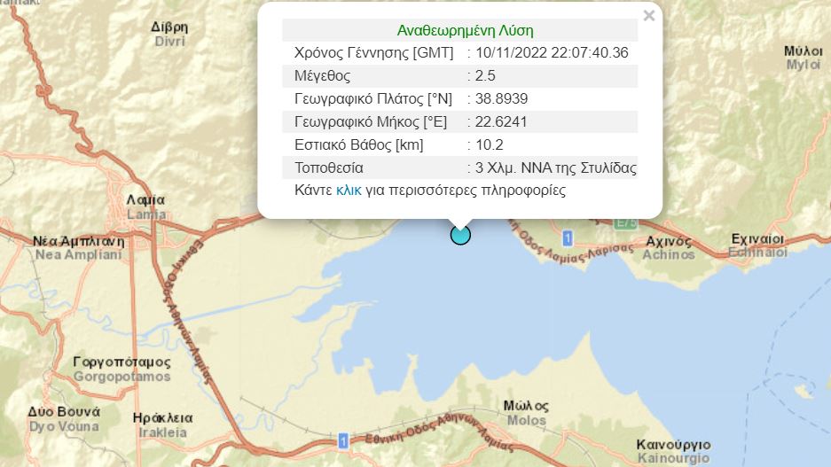 Σύμφωνα με την αναθεωρημένη λύση του Γεωδυναμικού Ινστιτούτου του Εθνικού Αστεροσκοπείου Αθηνών, στις 00:07’ καταγράφηκε σεισμός μεγέθους 2,5 της Κλίμακας Ρίχτερ, με το επίκεντρο του 3 χιλιόμετρα νότια της Στυλίδας ή 15 χιλιόμετρα ανατολικά της Λαμίας, στο θαλάσσιο χώρο του Μαλιακού κόλπου.