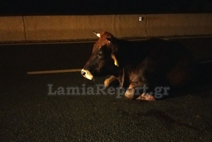 Τροχαίο με αγελάδα στην εθνική οδό (ΦΩΤΟ)