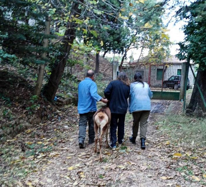 Ήλθε όμως η ώρα να συναντήσει τη φυλή της, και αυτό έγινε χτες 17 Νοεμβρίου. Μεταφέρθηκε, με συνοδό την Μάρω και την Άννα, που έχει ασχοληθεί χρόνια με το μεγάλωμα των ελαφιών της ΑΝΙΜΑ, στο εκτροφείο της Μονής Αγάθωνος (Δασαρχείο Λαμίας). Δεν θα βγει για την ώρα στο άγριο δάσος, καθώς δεν ξέρει να προστατευθεί από τους θηρευτές της, αλλά θα ζήσει με άλλα οκτώ ελάφια στα 800 στρέμματα του εκτροφείου.