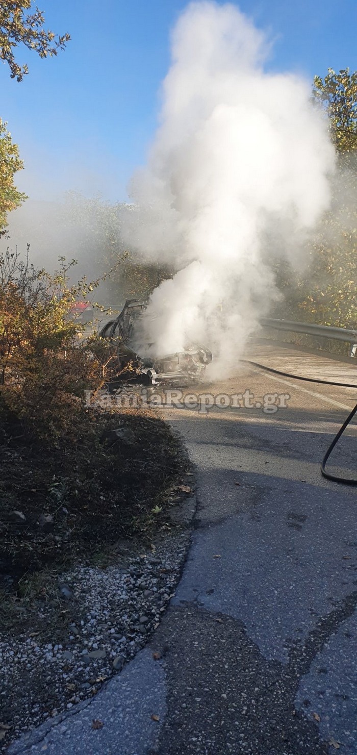 Φθιώτιδα: Παραδόθηκε στις φλόγες μετά από τροχαίο (ΦΩΤΟ)