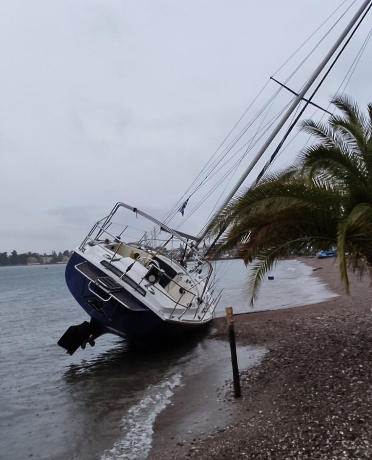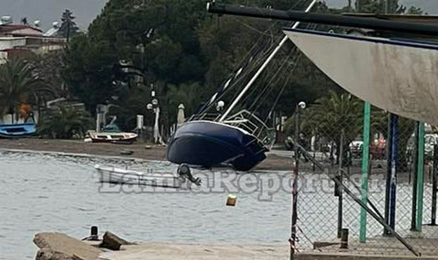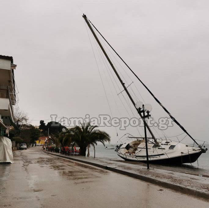 Οι πολύ ισχυροί άνεμοι από νοτιοδυτικές διευθύνσεις που έπνεαν από το βράδυ στην ανατολική Φθιώτιδα, είχαν ως αποτέλεσμα στις Ράχες ιστιοπλοϊκό να βρεθεί στη στεριά!