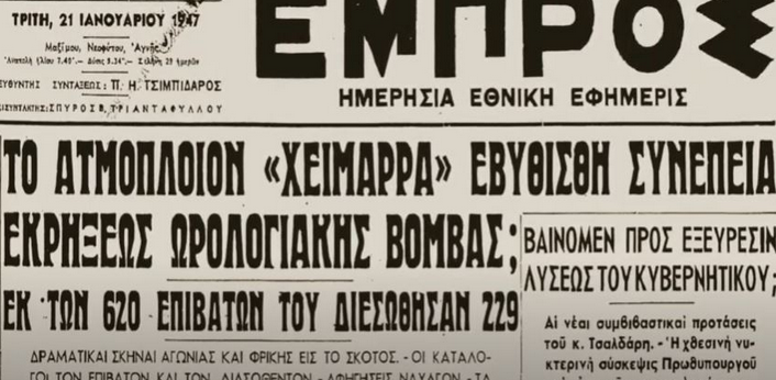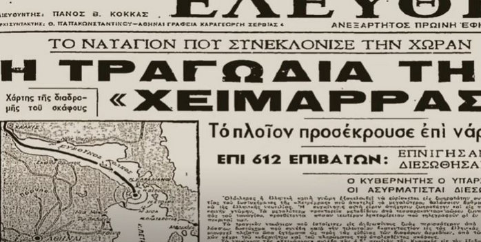 Σαν σήμερα το 1947 βυθίστηκε στο Νότιο Ευβοϊκό το επιβατηγό «Χειμάρρα», που έμελλε να είναι το πιο πολύνεκρο ναυάγιο στη χώρα μας.