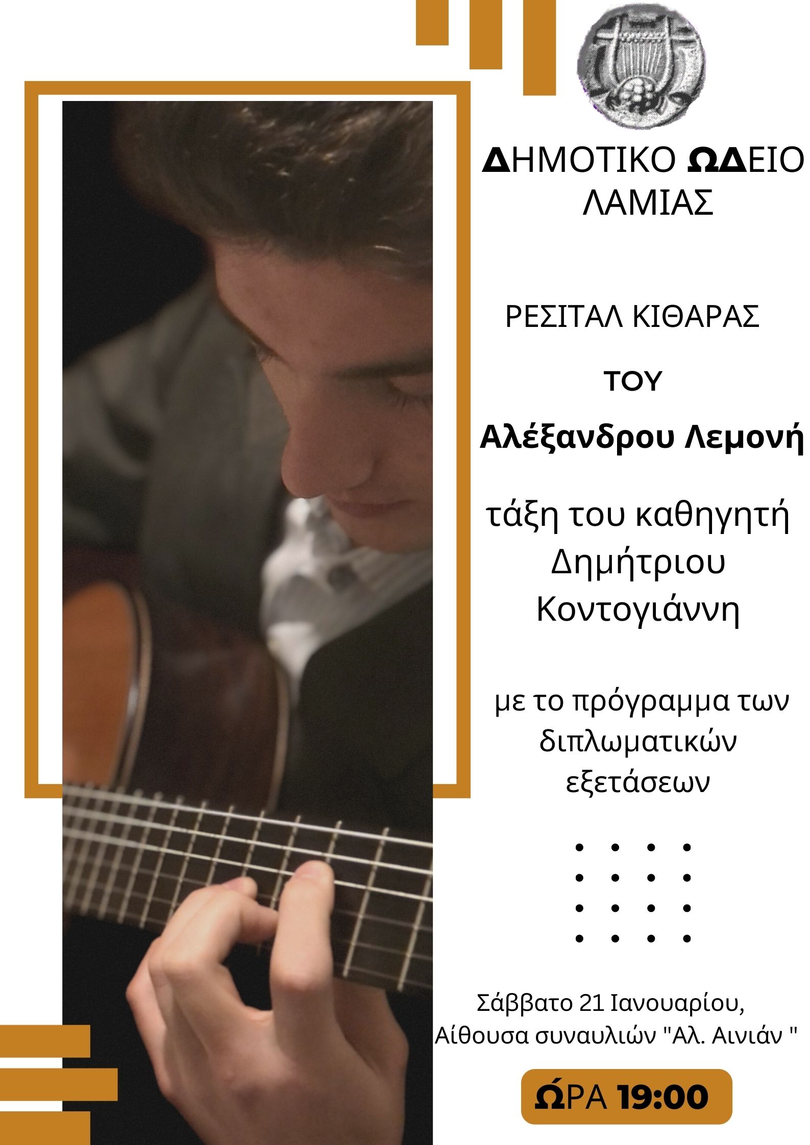 Το Δημοτικό Ωδείο Λαμίας σας προσκαλεί στο Ρεσιτάλ Κιθάρας των σπουδαστών :