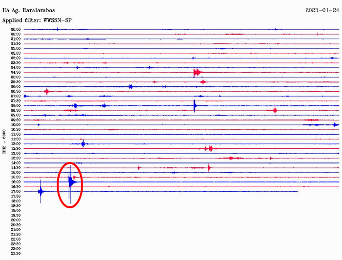 Δείτε την καταγραφή του σεισμού από το σεισμογράφο στον Άγιο Χαράλαμπο Μώλου: