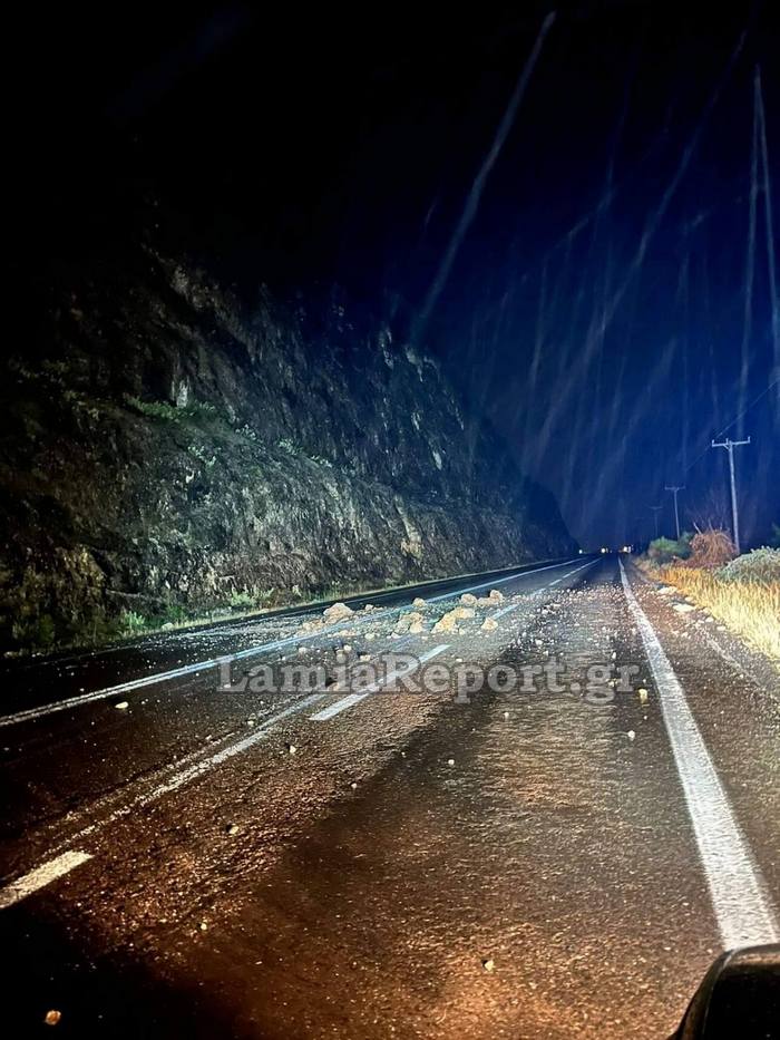 Προβλήματα δημιούργησε η κακοκαιρία στην εθνική οδό Θερμοπυλών - Ιτέας στο ύψος του Μπράλου.