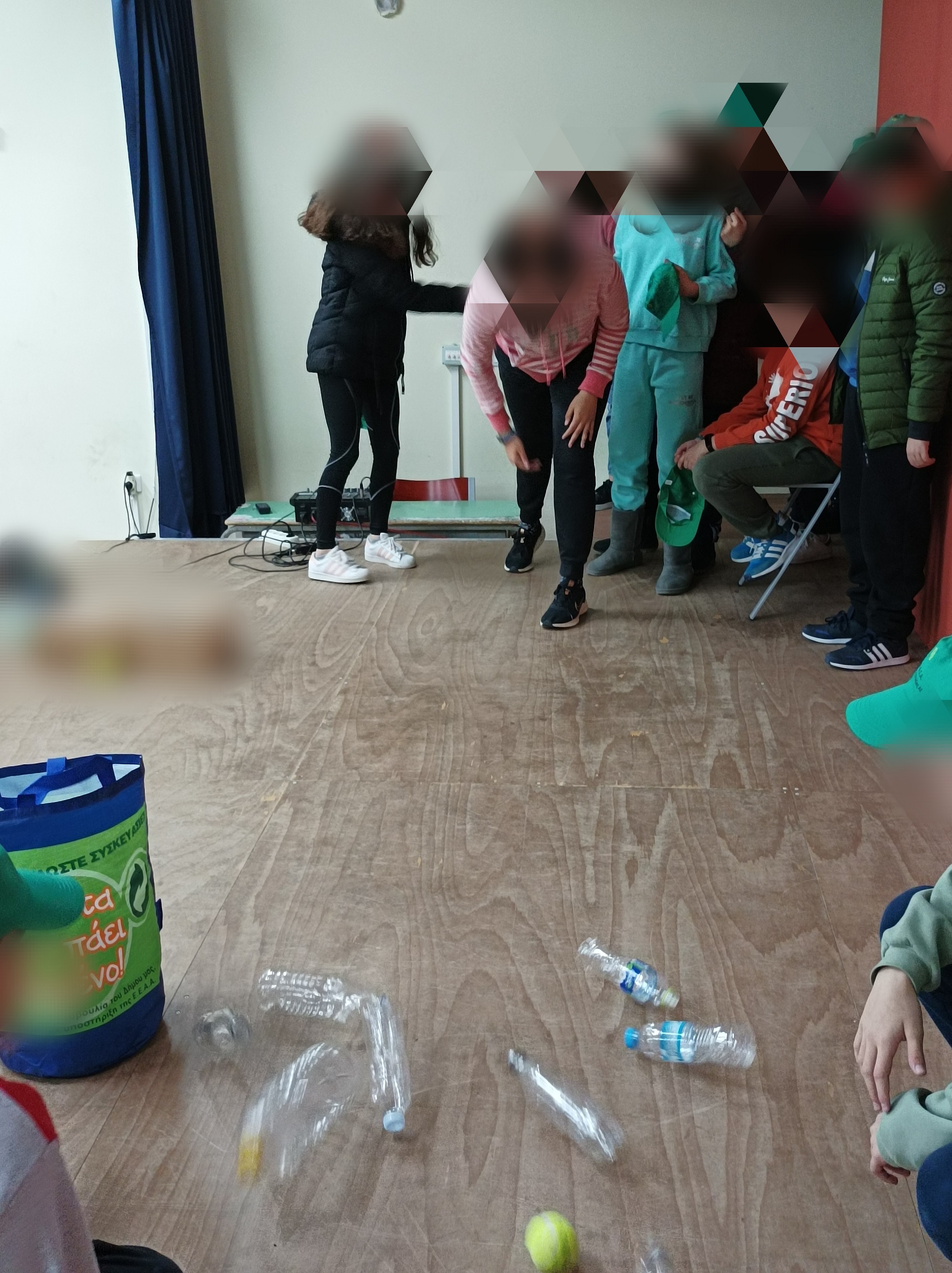 Επίσης, οι μαθητές έπαιξαν bowling με ανακυκλώσιμα υλικά κατανοώντας στην πράξη τη συμβολή της επαναχρησιμοποίησης στην προσπάθεια για την προστασία του περιβάλλοντος.