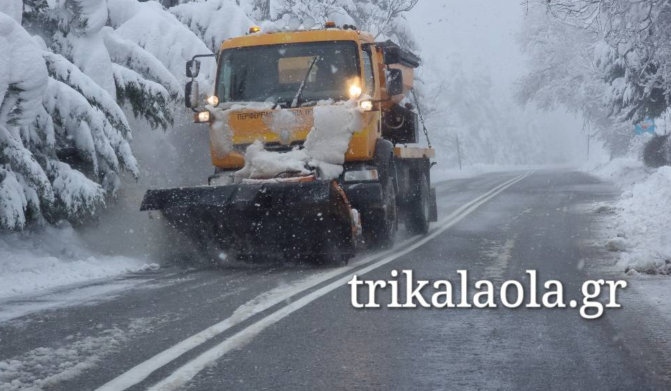 Η κεντρική οδική αρτηρία Πύλης – Περτουλίου – Τρία Ποτάμια είναι ανοιχτή καθώς τα εκχιονιστικά μηχανήματα της Περιφέρειας Θεσσαλίας καθαρίζουν συνεχώς το οδόστρωμα και ρίχνουν συγχρόνως αλάτι για να μην παγώσει.